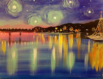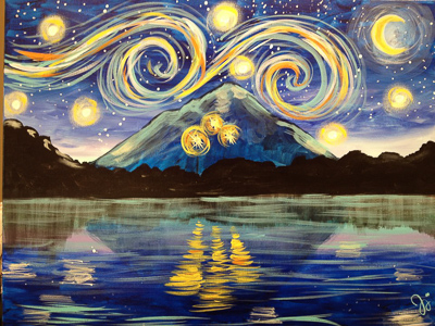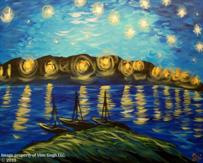 A look at the paintings we create together during Vine Gogh classes and events. Each piece is guided step-by-step and designed to be approachable for all experience levels.